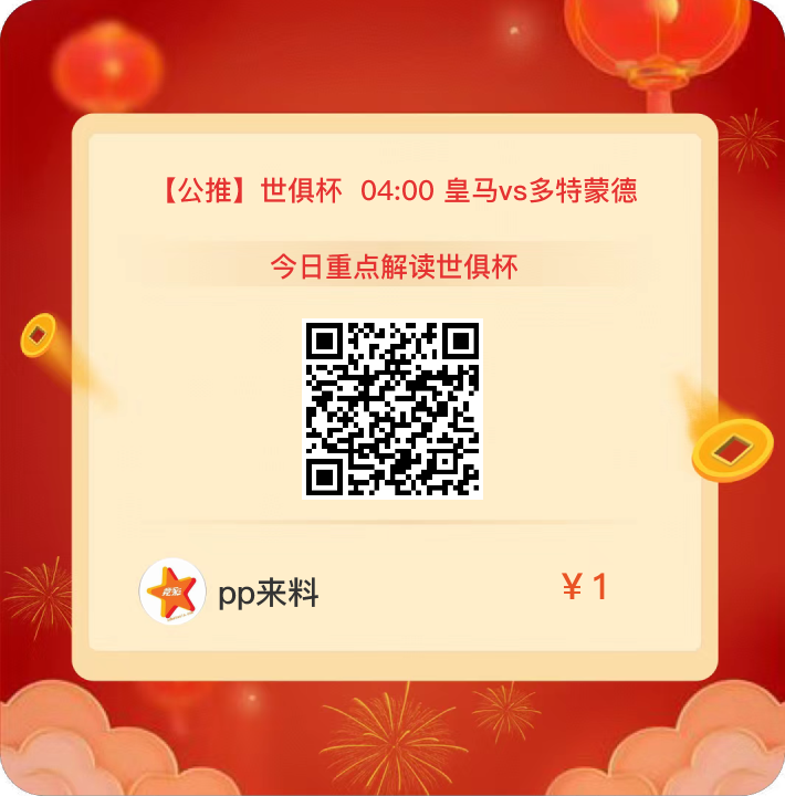 点击下方扫码进入PP体育有料主页,查阅更多精准赛事分析