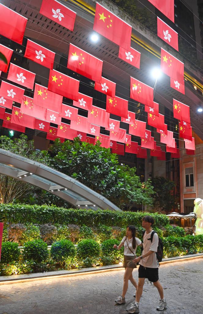 7月1日,香港迎来回归祖国28周年纪念日,整座城市沉浸在喜庆祥和的气氛中。街头巷尾,五星红旗与紫荆花区旗迎风飘扬。全港十八区,几百项庆祝活动缤纷登场。市民和游客融入欢庆的队伍,尽情感受“东方之珠”绽放的喜庆与活力。