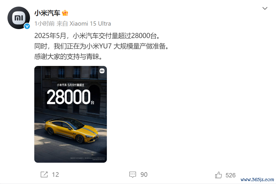 小米汽车今日发布微博称,2025年5月,小米汽车交付量超过28000辆,4月官方披露的交付数据也为28000辆。同时,小米汽车正在为小米YU7大规模量产做准备。